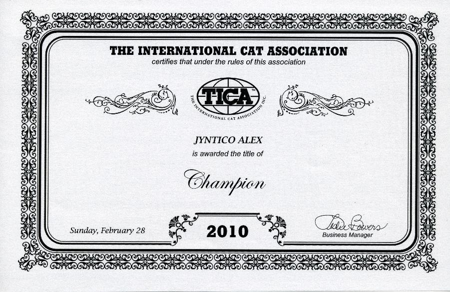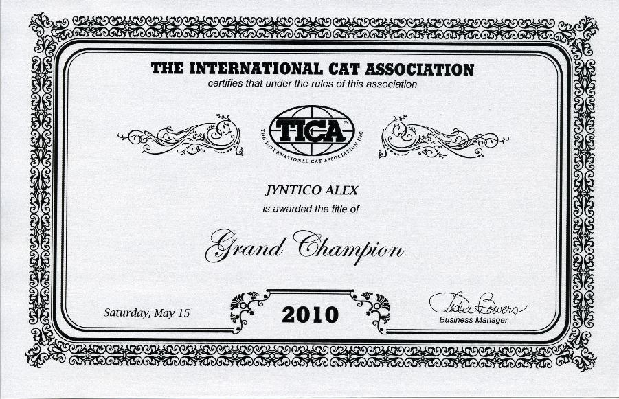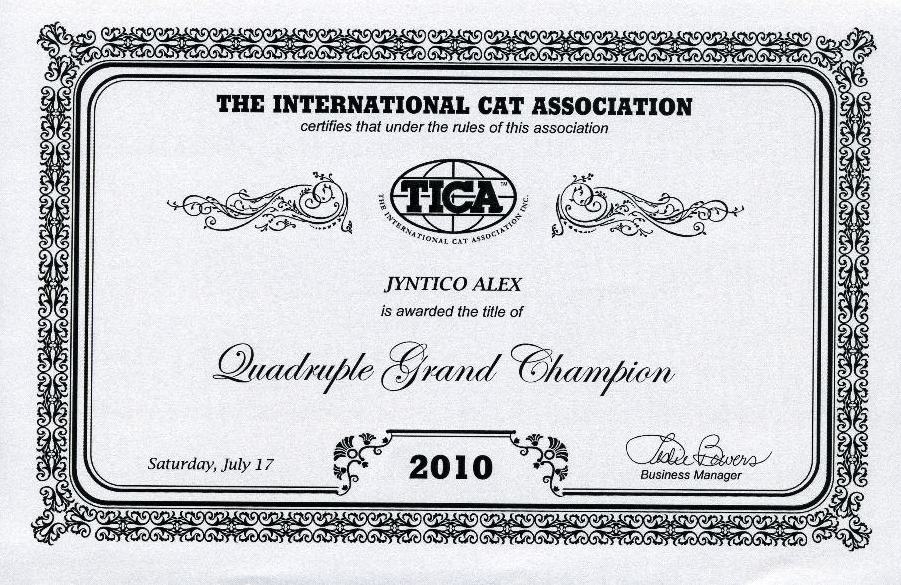 Oh, by the way, did we mention and did you see that all of the awards certifying Alex have been signed by the President of TICA, Vickie Fisher?! Oh our goodness, the season has just started 3 months ago! What else should we expect and how much more can our little human hearts take of such suspenseful action?
