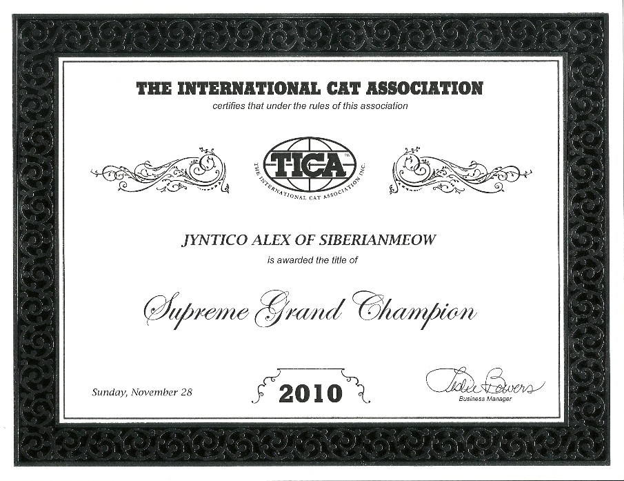 Our title has been upgraded from QGC Jyntico Alex of SiberianMeow to SGC Jyntico Alex of SiberianMeow !