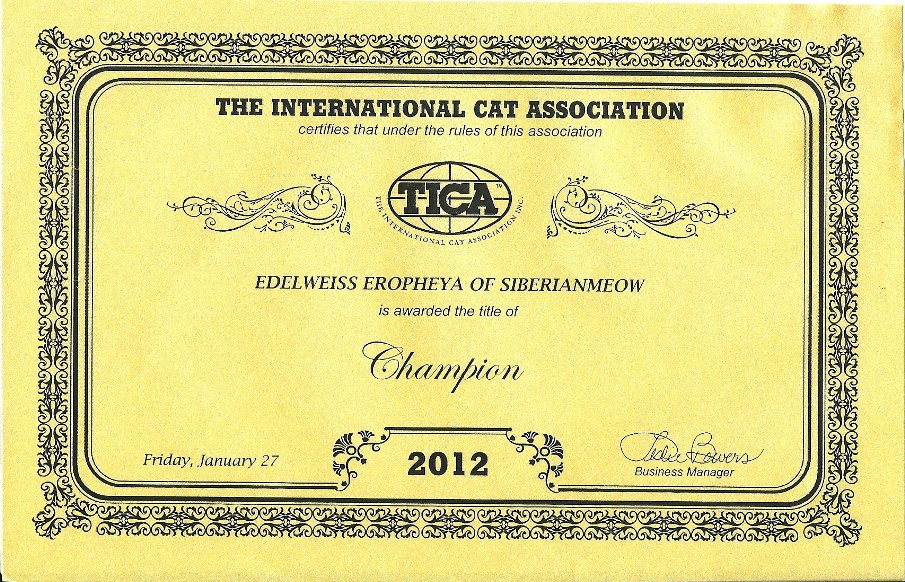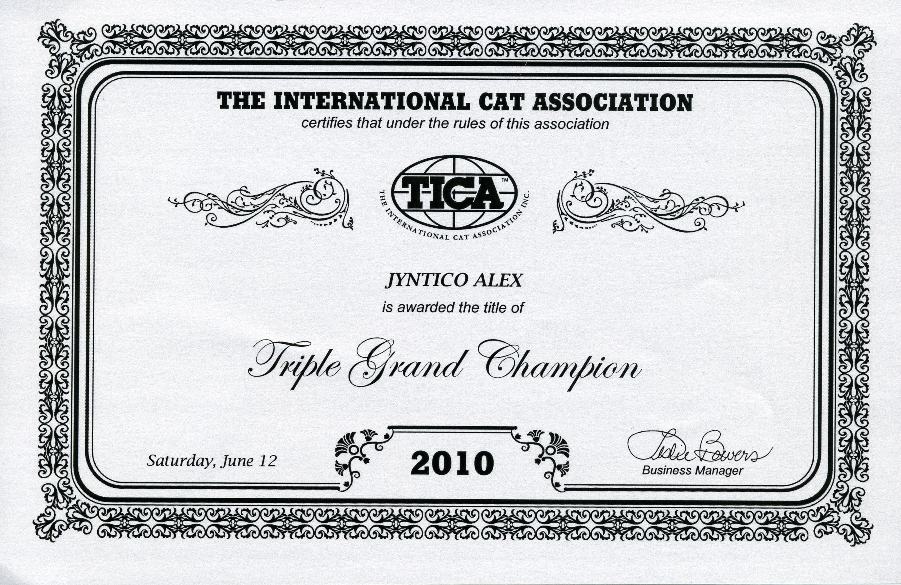 Our title has been upgraded from DGC Jyntico Alex of SiberianMeow to TGC Jyntico Alex of SiberianMeow !