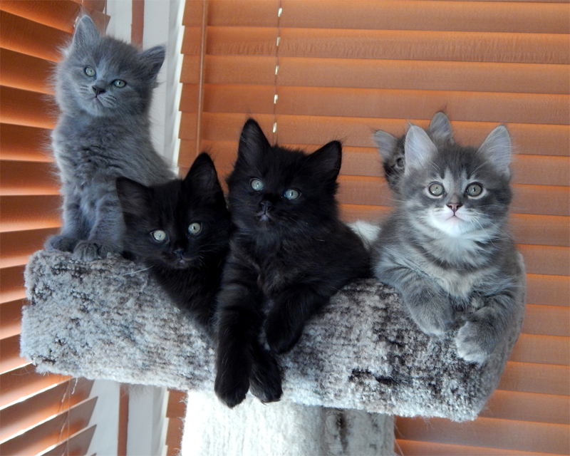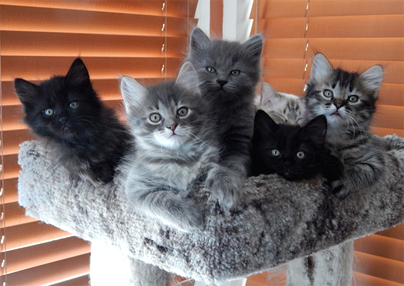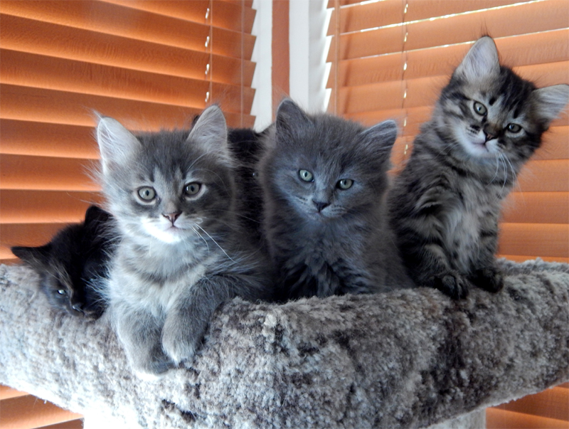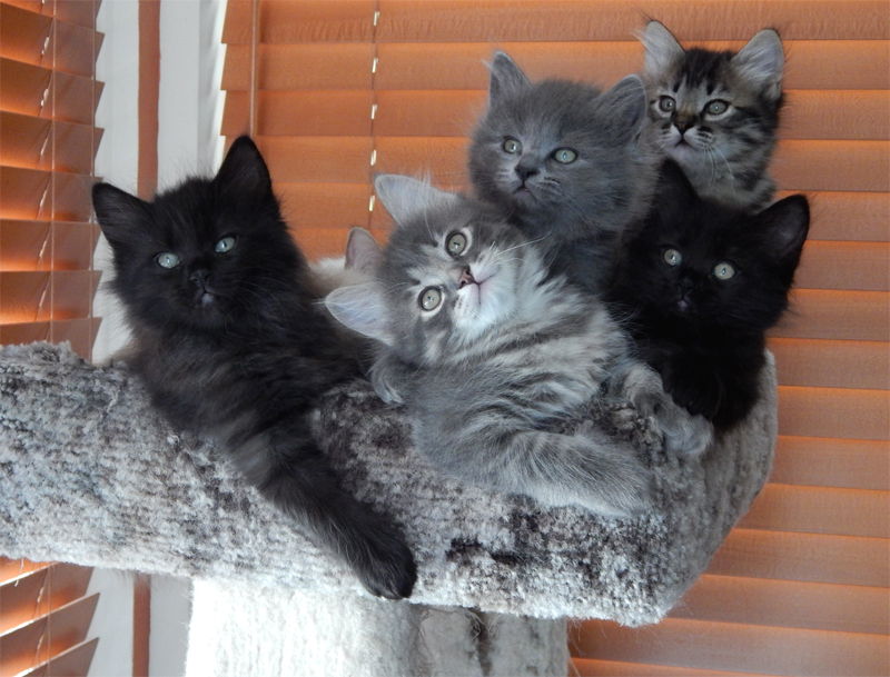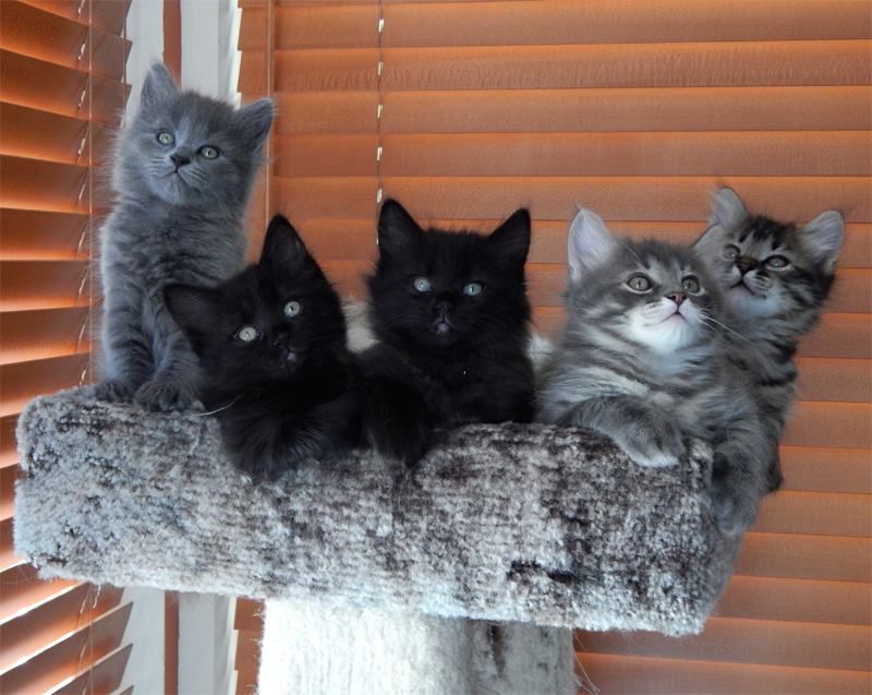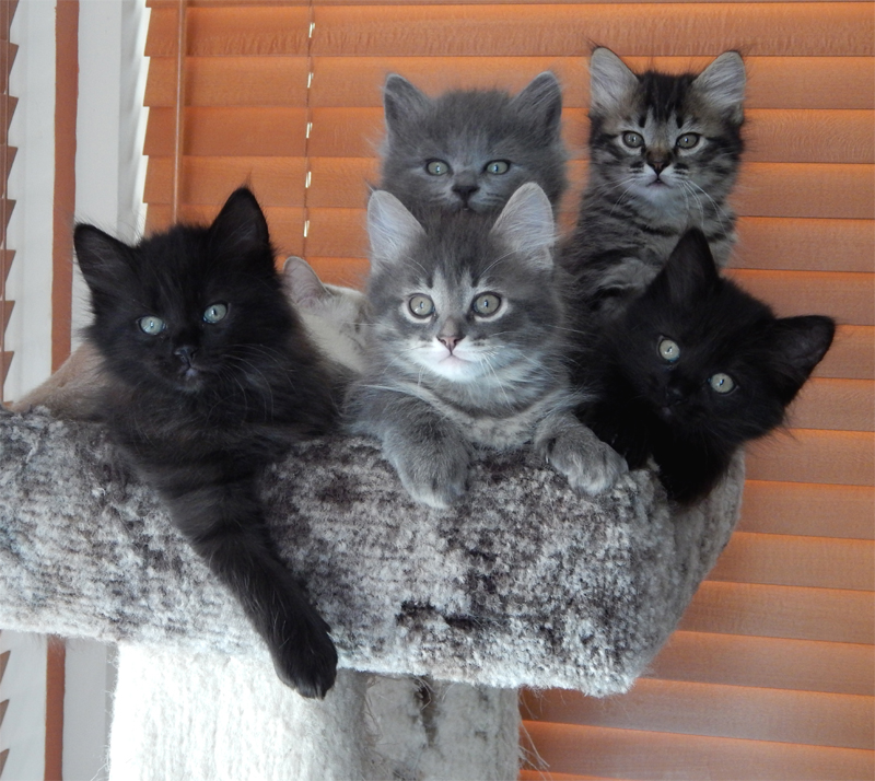 Litter "K" February 19, 2015 Sire: IW SGC Jyntico Alex of SiberianMeow Dam: CH Eropheya of SiberianMeow 2 Boys & 3 Girls